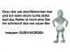 ....auch einen guten Morgen aus dem schönsten Bundesland der Welt ....heute macht es seinem Ruf sogar alle Ehre: Regen und kühl, kann nur besser werden Also an alle: Kopf hoch, raus aus den Federn, ran an die Buletten und heute keine Schmerzen!!!! Grüß Euch lieb!